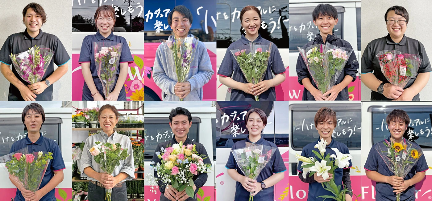花を通じて、一人でも多くのお客様から笑顔と「ありがとう」のお言葉を頂ける様に従業員一同さらなる向上を目指して、努力を続けて参ります。