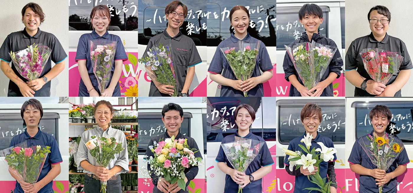 花を通じて、一人でも多くのお客様から笑顔と「ありがとう」のお言葉を頂ける様に従業員一同さらなる向上を目指して、努力を続けて参ります。