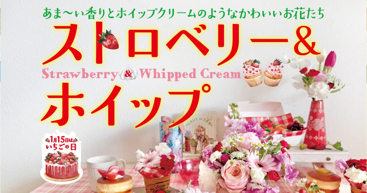 1月15日“いちごの日”に合わせて、ふんわり&甘い香りのお花が勢ぞろいしたフェア『ストロベリー&ホイップ』を期間限定で1/15より開催!